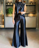 ✨Conjunto de dos piezas de pantalón y top con abertura de color liso a la moda✨