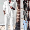 El paquete incluye: 1 conjunto de dos piezas de algodón y lino para hombre: camiseta y pantalón